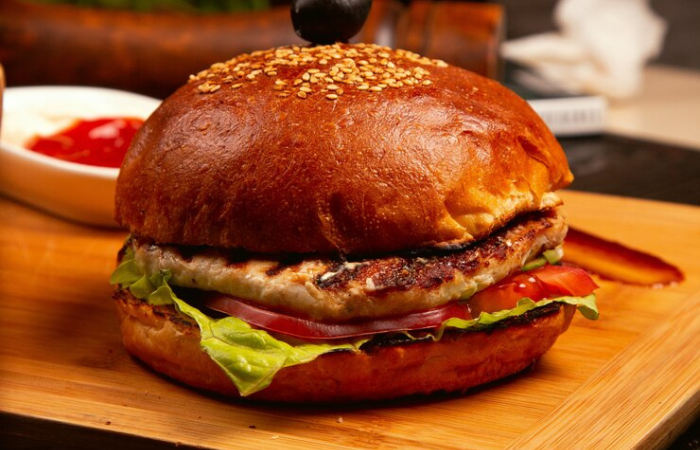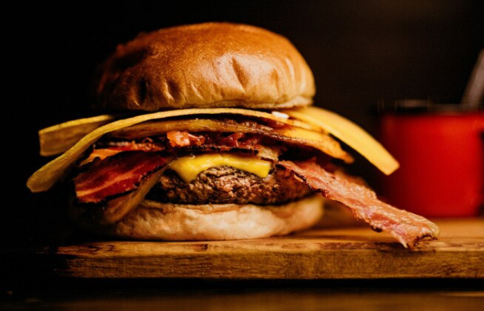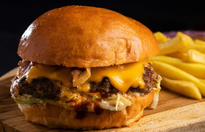 Pão de batata selado, burger artesanal bovino…
